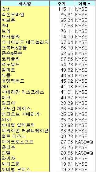 그는 "다우 구성종목은 30개 밖에 안되기 때문에 더더욱 각 종목은 각 산업을 제대로 반영하는 종목이어야 한다. 모든 주요 업종은 2개 이상의 대표종목으로 구성돼 있다. 이 기업들의 움직임 없이는 미국 경제에서 중요한 상황변화가 있을수 없다"고 자신했다.
