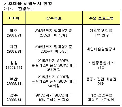 또 △생태산업단지 조성 △바이오디젤 등 친환경 연료 보급확대 △하수 슬러지(찌꺼기)를 비롯한 폐기물 자원화 등 '온실가스 감축 13개 중점사업'을 펼쳐 추가로 220만 탄소톤의 온실가스를 감축할 계획이다.