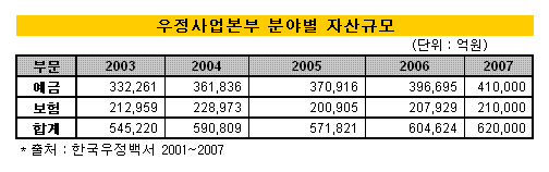 우정사업본부(이하 우본)는 국민연금에 버금가는 금융시장의 공룡이다. 예금자산 41조원, 보험자산 21조원 등 운용자금이 무려 60조원에 이른다.