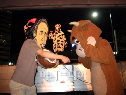 인기가요 '땡벌'을 개사해 미국산쇠고기 문제점과 정부정책을 풍자한 공연과 젖소 복장을 입고 등장한 청소년들의 퍼포먼스가 시민들의 눈길을 끌었다.