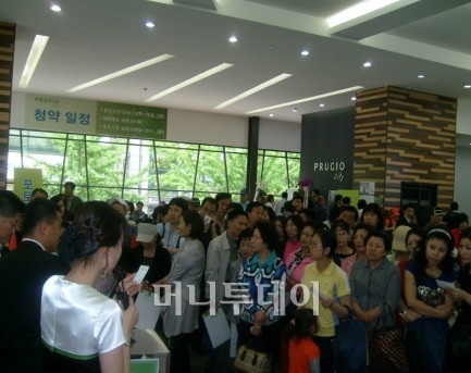 16일 대우건설에 따르면 인천 논현지구 오피스텔 '논현 푸르지오시티' 524실에 대한 현장 청약을 접수한 결과 첫날인 지난 15일 7000여명의 신청자가 몰려 북새통을 이뤘다.