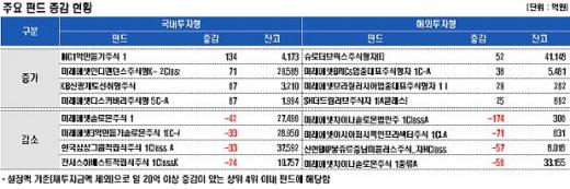 개별펀드로는 'ING1억만들기주식1'의 설정액이 134억원 증가했고, '미래에셋인디펜던스주식형 K-2Class'는 71억원, 'KB신광개토선취형주식'은 67억원 늘었다.