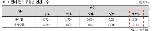 그는 이어 "(조사 결과) 오프라인에서 인기를 얻었던 펀드는 보수 할인 폭이 생각만큼 크지 않기 때문에 온라인 전용펀드에 대한 기대치를 너무 높이지 말아야 한다"며 "오프라인에서 인기를 끌었던 펀드에 집착하기보다는 보수가 저렴한 온라인 전용펀드가 있는지 찾아보는 게 낫다"고 권했다.