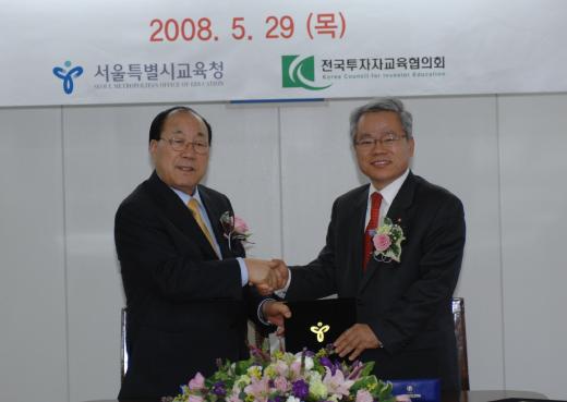 전국투자자교육협의회(의장 황건호)는 29일 서울특별시교육청(교육감 공정택)과 청소년의 금융능력 향상 및 올바른 경제관 확립을 위해 상호협력하기로 업무협약(MOU)을 맺었다.