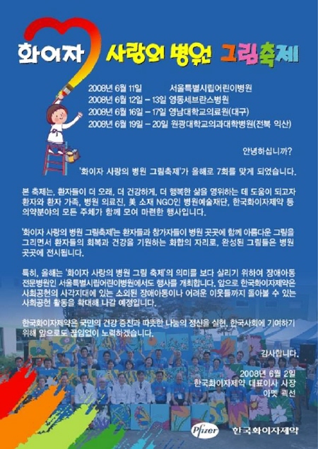 2002년부터 시작된 ‘화이자 사랑의 병원 그림축제’는 한국 화이자 제약의 대표적인 사회 공헌 프로그램으로 자리 매김하고 있다.