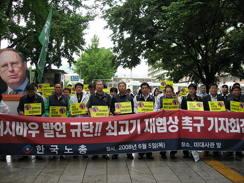 한국노총은 5일 오전 11시 서울 세종로 미 대사관 앞에서 기자회견을 연 뒤 '쇠고기 수입 재협상 수용'을 촉구하는 공개 서한을 대사관 측에 전달했다.