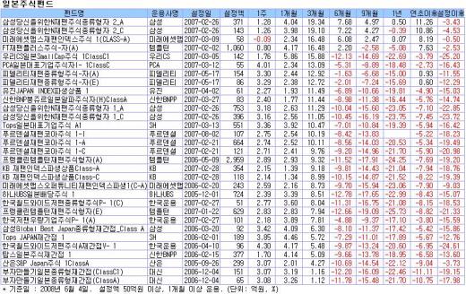 개별 펀드로는 '삼성당신을위한N재팬주식종류형자 2_A'가 19.34%로 3개월 수익률이 가장 높았다. 이 펀드의 연초 이후 수익률은 11.26%, 1년 수익률은 0.50%를 기록했다. 2007년 2월 설정후 누적수익률이 -3.43%로 그동안 손실을 대부분 만회했다.