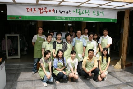 레드캡투어(10,270원 ▼360 -3.39%)(대표 심재혁, www.redcaptour.com)는 최근 아름다운가게 종로 안국점에서 ‘아름다운 토요일 행사’를 진행했다고 25일 밝혔다.