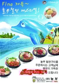 놀부 철판구이 메뉴 주문시 100%당첨 스크래치 카드를 증정한다. 스크래치 카드 속에는 여름철 물놀이용 돌고래 에어완구를 비롯, 파인음료 1병, 부대찌개에 넣어 먹고 싶은 사리 증정 등의 행운이 담겨있다. (02)574-5511