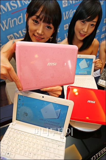 MSI의 한국지사인 MSI코리아는 16일 인텔의 '아톰' 중앙처리장치(CPU)를 탑재한 254mm(10인치) 노트북 '윈드'(WIND, 모델명 U100)를 내놓았다. 화이트, 블랙, 핑크 등 3가지 색상의 모델이 있으며, 가격은 59만9000원.