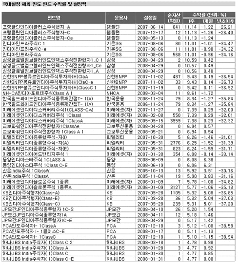 28일 한국펀드평가에 따르면 '동양인디아스타주식 1 CLASS A'의 1개월 수익률은 6.38%를 기록했고, 'KB인디아주식형자(Class-A)' 역시 1달 동안 5.08%의 수익률을 시현했다.