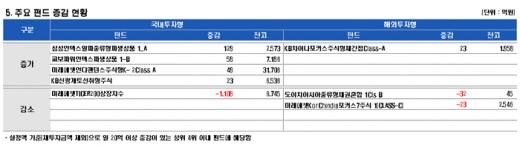 개별펀드로는 '미래에셋KorChindia포커스7주식 1(CLASS-C)'에서 23억원의 자금이 빠져나갔다.