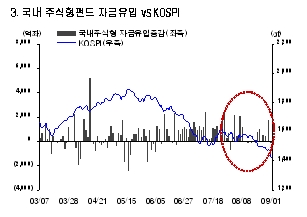 지난달 26 ~ 29일 국내 주식형 펀드로 자금이 유입되긴 했지만 대부분 차익거래 목적 등을 수반한 ETF여서 사실상 자금 유출이 현실화되고 있다는 견해도 나오고 있다.