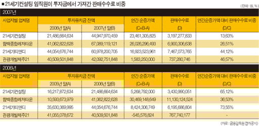 21세기컨설팅과 3개 특수관계사들의 2006년도 재무제표와 손익계산서를 보면 판매 수수료 지급규모가 지난해보다 더 많다.