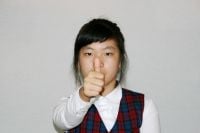 먼저 엄지손가락을 팔 길이만큼 눈앞에 들고 숨을 천천히 들이쉬면서 코 앞까지 당긴다.