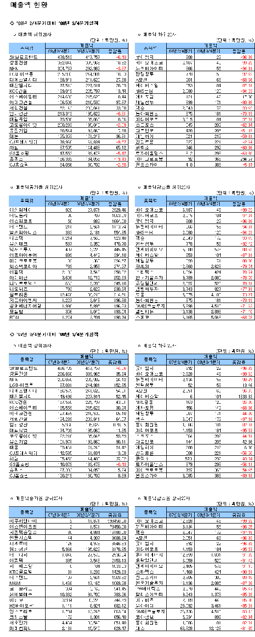 [표]코스닥 3분기 매출액 현황