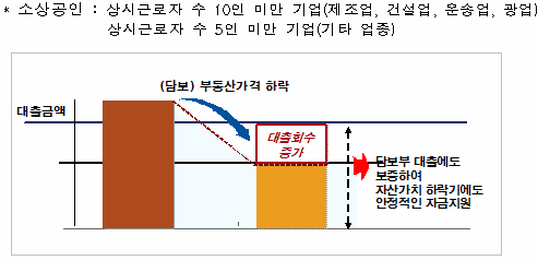 금융위 관계자는 “부동산 가격이 하락함에 따라 금융회사들이 부동산 담보부 대출을 받은 소상공인에 대해 상환을 요구할 가능성이 높아지고 있다”며 “이번 특별보증제도 도입으로 소상공인들은 만기연장이나 신규 대출에 큰 어려움이 없을 것”이라고 설명했다.