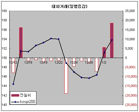 지금의 관심사는 인간의 승리냐 프로그램이라는 기계가 승리할 것이냐 이다. 특히 이틀 뒤면 옵션 만기일인데, 금번 옵션 만기일이 1월장은 물론 1/4분기 장을 좌우할 가능성이 상당히 크다는 점에서 그 어느때보다 이들의 싸움은 흥미진진하게 다가온다.