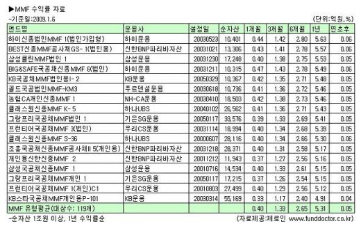 김형호 아이투신 상무는 "MMF에 자금이 집중되면서 최근 시장에서 1년 미만 국고채나 통안채 등을 구하는 게 어려워졌고 이 때문에 금리도 많이 떨어졌다"고 전했다.
