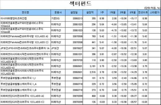 이밖에도 대신투신운용의 ‘부자만들기다이나믹혼합1’, 기은SG자산운용의 ‘그랑프리한국대표주식A’, 한국투신운용의 ‘한국투자삼성그룹적립식주식 2(A)’, KTB자산운용의 ‘KTB마켓스타주식_B’ 등도 7-8%의 상대적으로 높은 수익률을 기록했다.