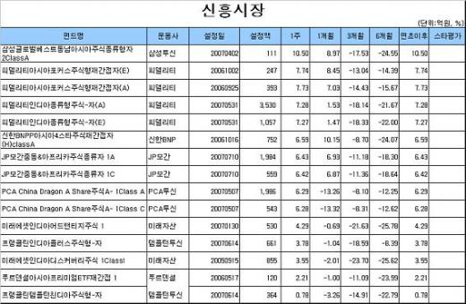 해외 주식형펀드에서는 삼성투신운용의 ‘삼성글로벌베스트동남아시아주식종류형자 2ClassA’가 10.50%의 수익률로 가장 우수한 성과를 올렸다.