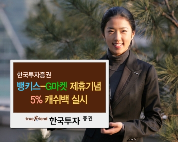 한국투자증권(대표이사 유상호)은 은행연계계좌 서비스인 뱅키스(BanKis)와 G마켓과 제휴, 거래수수료의 5%를 되돌려 받는 'G마켓 5% 캐쉬백서비스'를 실시한다고 12일 밝혔다.