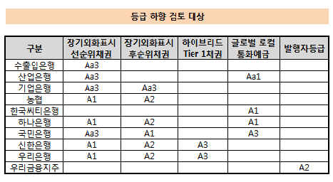 무디스는 등급 검토가 외화 직접 조달과 스왑 계약 체결 등 은행들의 외화 조달 채널에 집중될 것이다"고 밝혔다.