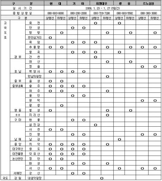 아울러 겨울철·장거리 운행을 위한 차량관리 및 안전운전 요령을 안내하고, 전국 어디서나 가까운 정비소에서 서비스를 받을 수 있도록 종합상황실을 운영할 예정이다.