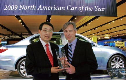 제네시스는 지난달 11일 미국 디트로이트 코보센터에서 열린 ‘2009 북미 국제오토쇼(디트로이트 모터쇼)’에서 한국차 중 처음으로 1위에 등극했다.