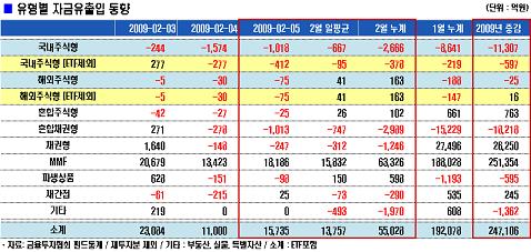 이밖에 혼합형, 채권형펀드 등에서도 각각 1038억원, 247억원의 자금이 빠져나갔다.
