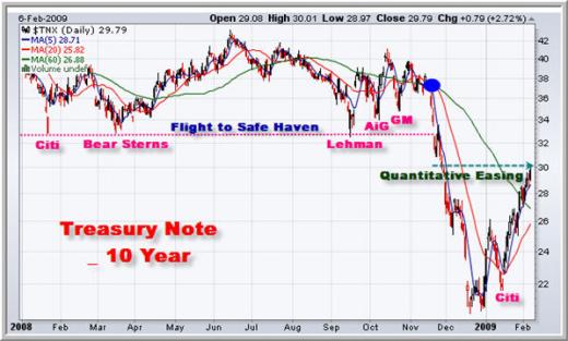지난 해 8월 이후 증시에서 빠져나간 유동성은 쓸물이었다. 특히 이머징마켓에서의 유동성 철수 현상은 가히 탈출러쉬를 이룬 엑소더스였다. 요인은 리만브라더스에 불이 붓고 다음으로 모건스탠리와 골드막삭스에도 화염이 번질 지 모른다는 걱정이 많았기 때문이다. 1월에도 영국의 스코틀랜드 은행, 바클레이즈 은행, 미국의 씨티와 BOA가 똥줄이 타는 어려움이 전해지니, 다시 지난해 가을의 악몽을 언급하는 기사들이 봇물을 이룬다. 그런데, 상업은행은 주주는 망해도 은행은 망하지 않는 시스템이다. 그래서 제대로 모르면서 오바하지 말라고 저기 아래 모형은 말해준다. 오히려 잘하면 큰 모형의 턴어라운드를 공상하게 하는 그림이다.