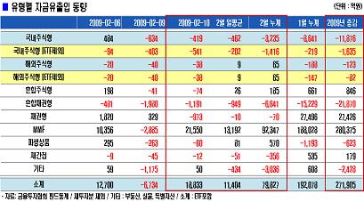 이밖에 해외 주식펀드 36억원, 혼합형펀드 1265억원, 채권형펀드 973억원, 파생상품펀드 60억원, 재간접펀드 12억원이 각각 빠져나갔다.