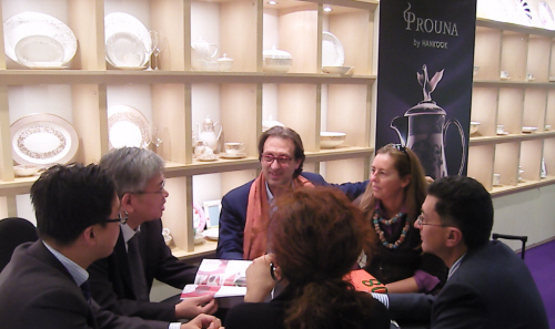 웨지우드 등 대형 도자기업체들이 잇따라 쓰러진 것을 기회로 삼아 유럽시장 공략에 나선 한국도자기는 지난 13일 시작된 이 박람회에 스와로브스키 원석으로 세공한 도자기 '프라우나 쥬얼리'를 출품했다. 이 자리에선 김영신 대표가 직접 해외 바이어들과 상담을 벌였다.