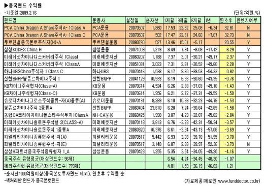 중국 본토증시와 홍콩증시의 괴리만큼이나 중국펀드도 투자대상에 따라 수익률이 천차만별이다. 17일 펀드평가사 제로인에 따르면 16일 현재 'PCA차이나드래곤A쉐어주식A- 1ClassA'의 연초 이후 수익률은 32.81%, '푸르덴셜중국본토주식자(H)-A'는 20.55%에 이른다. 두 펀드는 중국 본토증시에 투자하는 몇 안 되는 '중국'펀드다.