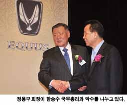 현대차의 신차 발표회에 국무총리가 참석한 것은 이번이 처음이 아니다. 10년 전인 1999년 처음으로 에쿠스를 선보일 때도 당시 김종필 국무총리가 신차 발표회를 찾은 바 있다. 10년 전이나 지금이나 경제위기 하에서 가진 에쿠스 신차 발표회에 국무총리가 참석한 것에 대해 현대ㆍ기아차는 상당히 의미 있게 받아들이는 모습이다. 경기침체로 자동차산업이 어려움을 겪고 있는 상황이지만 총리의 참여로 홍보 효과를 더욱 높일 수 있기 때문이다.