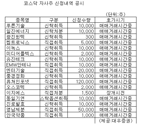 [표]코스닥 자사주 신청내역-20일