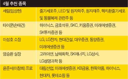 4월 증시 역시 낙관적일까? 재야고수 5인은 4월 코스피지수가 1350~1400선까지 오르며, 상승세를 이어갈 것으로 내다봤다. 다만 중순쯤 1200선 밑으로 떨어질 것이라는 전망도 있었다. 그들의 4월 증시 전망과 투자전략 조언, 추천 종목 등을 살펴봤다.