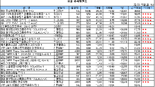 반면, 채권형펀드는 지난주 채권금리가 뛰면서(가격하락) '울상'을 지었다. 채권시장은 정부가 경기부양을 위한 추가경정예산을 확정 발표하면서 재원 조달용 국고채 발행이 늘어 수급 부담을 느꼈기 때문이다. 지난주 채권형펀드 주간 평균 수익률은 -0.27%를 기록했다.