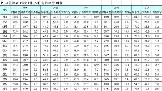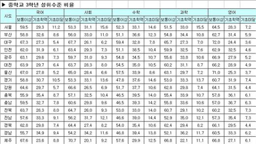 [표]수정된 학업성취도 평가 결과