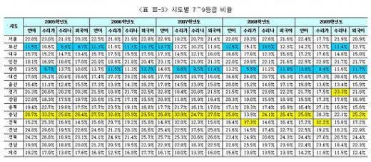 -광주, 1~4등급 비율 '톱'…충남은 7~9등급 비율 '톱'