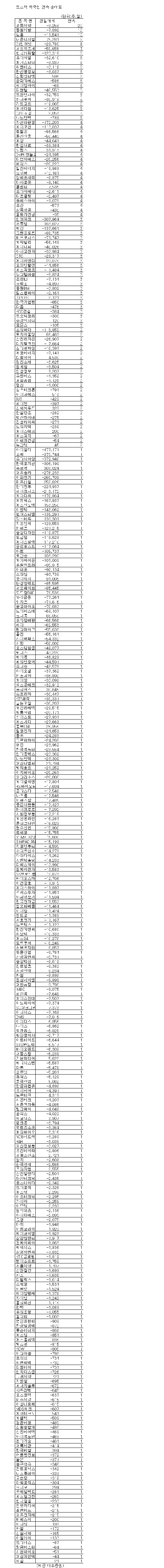 [표]코스닥 외국인 연속 순매도 종목-20일