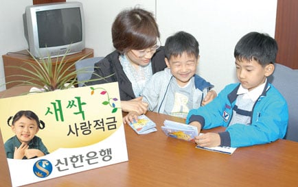 신한은행의 '새싹사랑적금'은 8자 이내에서 부모 또는 자녀가 원하는 문구를 직접 넣어 만들 수 있다. 'ㅇㅇ야 부자 돼라', 'ㅇㅇ야 사랑해' 등의 문구를 자유롭게 넣을 수 있다. 어린이날, 추석 등 기념일에 모은 용돈을 저축할 경우에는 0.1%포인트의 우대금리도 주어지고, 계좌 잔액이 10만원 이상이면 상해보험에 무료로 가입된다.