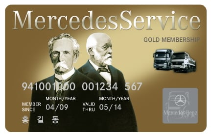 '메르세데스서비스 골드 카드’ 는 벤츠 트럭 소유 고객이 차량을 재 구매 할 경우 발급되는 멤버십 카드로 지난해 신규고객들을 대상으로 한 ‘메르세데스서비스 카드’ 보다 포인트 적립률을 5배 이상 높였다.