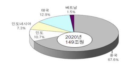 이중 67.6%가 중국에 집중될 것으로 예상됐다. 이외에도 태국(12.9%) 인도(10.7%) 인도네시아(7.3%) 등 국가들도 환경산업 진출 주요 대상지로 분류됐다.