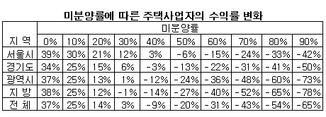 -주택사업자 평균 수익률 37%…미분양률 40%면 -9%