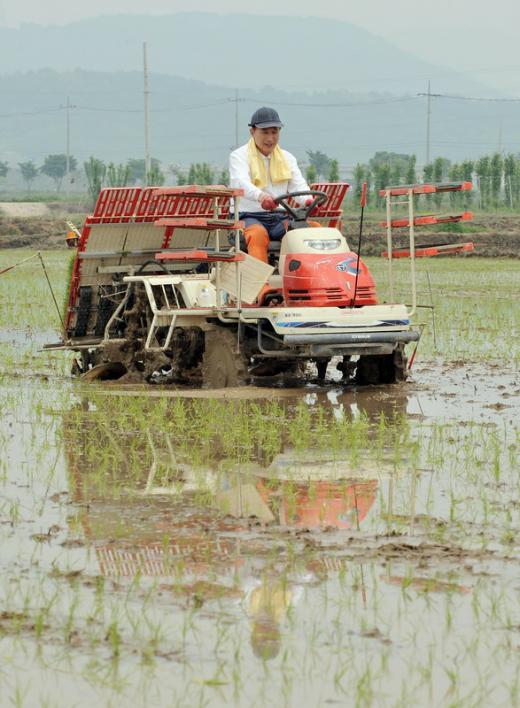 이 대통령은 이날 경기도 안성에서 농민들과 모내기를 함께 하는 자리에서 "고가의 농기계를 1년에 며칠이나 쓴다고 농민이 직접 구입해 소유할 필요가 없다. 농협이 구매해 낮은 임대료로 빌려주는 게 좋겠다"며 이같이 말했다.