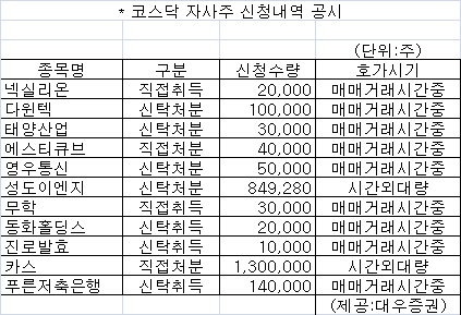 [표] 코스닥 자사주 신청내역-21일