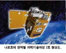 과학기술위성 2호를 싣는 발사체는 2단 로켓으로 총 중량 140kg에 길이 33m, 직경 3m다.