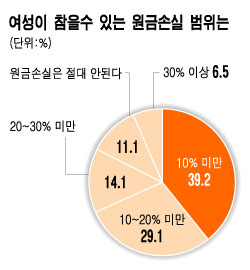 그러나 '참을 수 있는 원금손실 범위는 얼마인가'를 묻는 질문에는 남성 주식투자자 36.1%가 '10~20%미만' 꼽은 반면 여성은 39.2%가 '10%미만'을 지목했다. 10~20%미만 손실을 인내할 수 있다고 응답한 여성투자자 비율도 29.1%로 남성보다 낮았다.