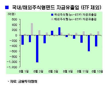 [펀드플로]해외주식형 6일연속 증가..국내주식펀드 15일째 순유출..